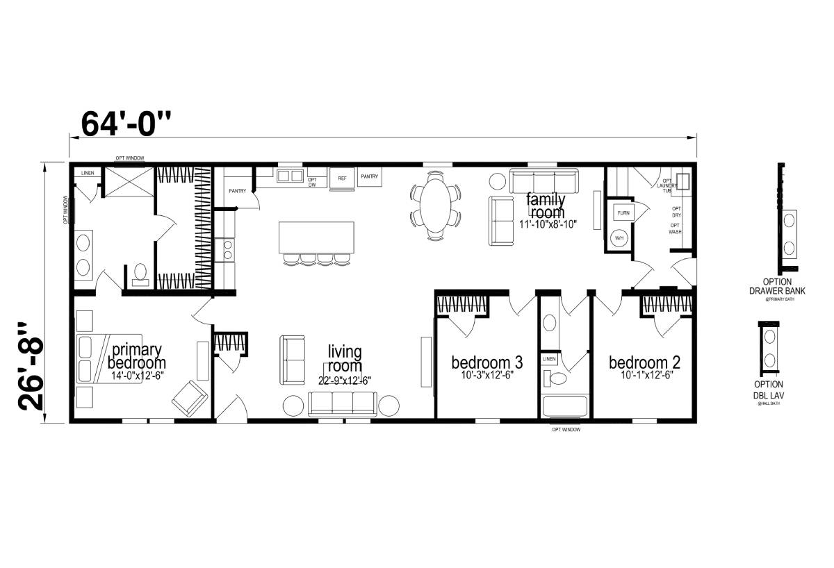 On DisplayThe Prairie Dune 8853 is a thoughtfully designed, two-section ranch-style home offering around 1,706 sq ft of living space, featuring three bedrooms and two bathrooms. An open-concept layout connects the family area to a modern kitchen complete with an island and walk-in pantry, ideal for everyday living and entertaining. The private master suite includes a walk-in closet and convenient access to the utility room, while the home also offers durability, energy-efficient construction, and exciting customization options.